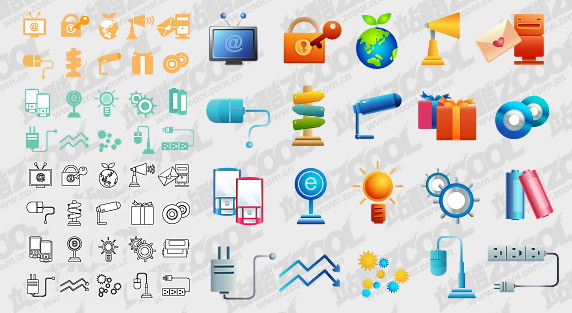 ai formats, including jpg preview, keyword: Vector icon, monitors, locks, keys, to protect the earth, germination, speakers, e-mail, letter, letter, road signs, road signs, mouse, gifts, CDs, cd, mobile phones, bulbs, gear, batteries, sockets, plugs, arrow, vector material