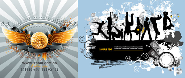 eps format, including jpg preview, keyword: Vector music, and fashion design, wings, ribbon, background radiation, a crystal ball, speakers, vinyl discs, speakers, dancing, hiphop music, beats, character sketch, vector material < br />