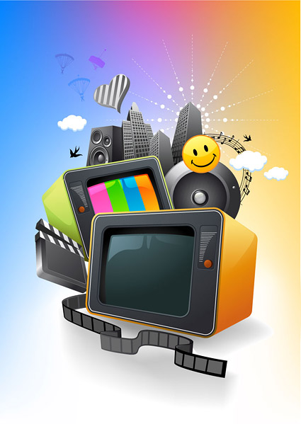 eps format, including jpg preview, keyword: Vector Multimedia, TV, video, architecture, sound, music, speakers, film, vector material